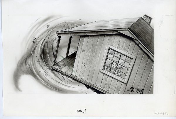 Amberoad Dorothy S House Caught In A Cyclone Original Book Illustration